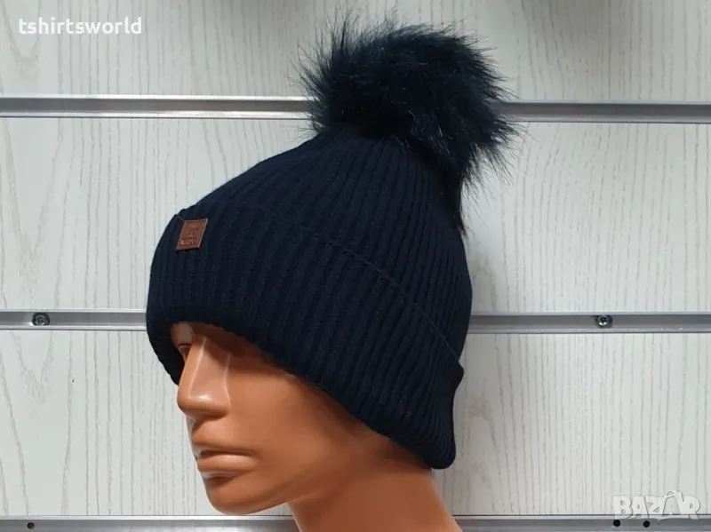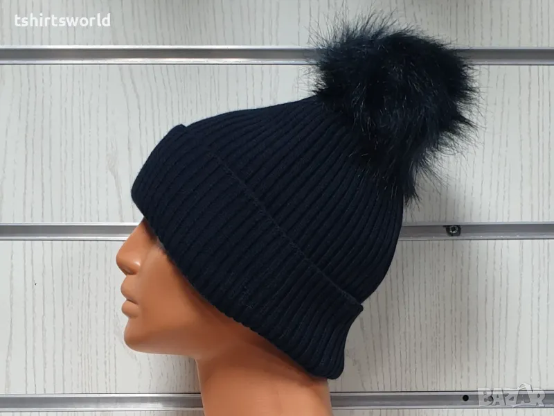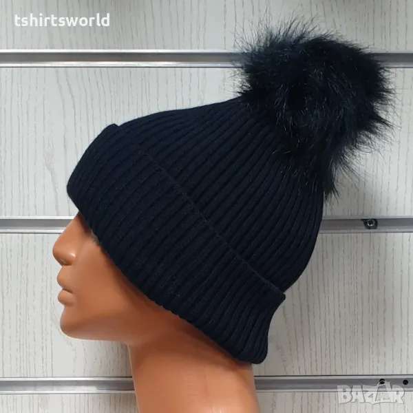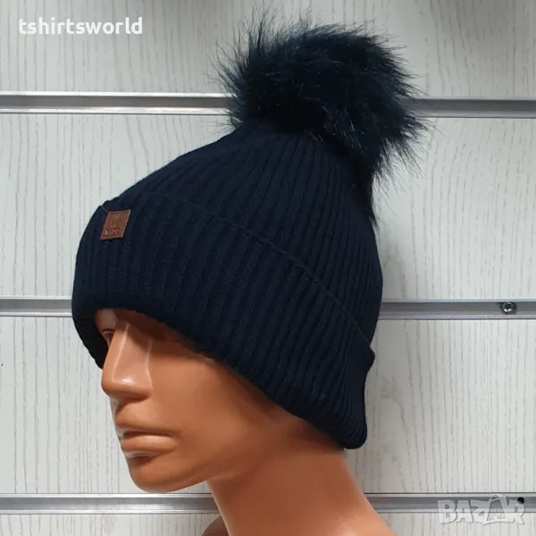 Нова зимна топла дамска шапка Silver Star в тъмносин цвят с пух/помпон → Обява 47926963