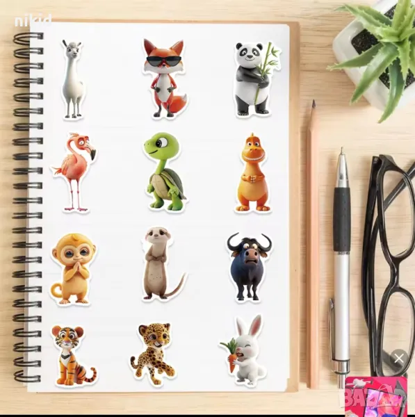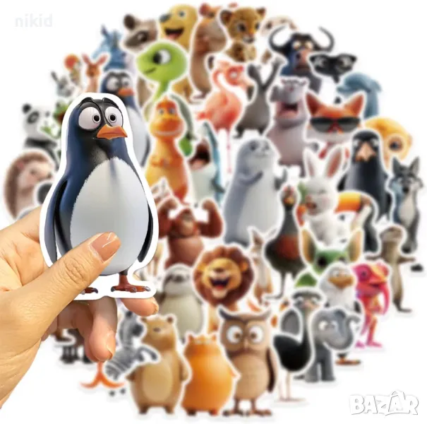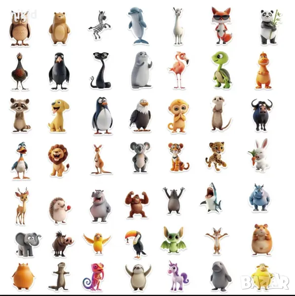 55 бр Животни самозалепващи лепенки стикери за украса декор картонена торта и др парти → Обява 47927092