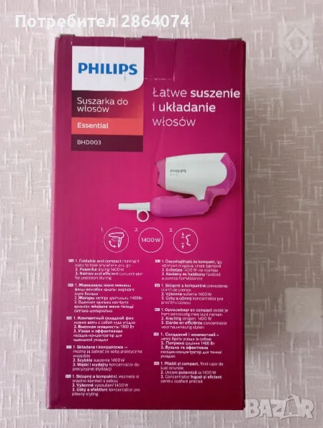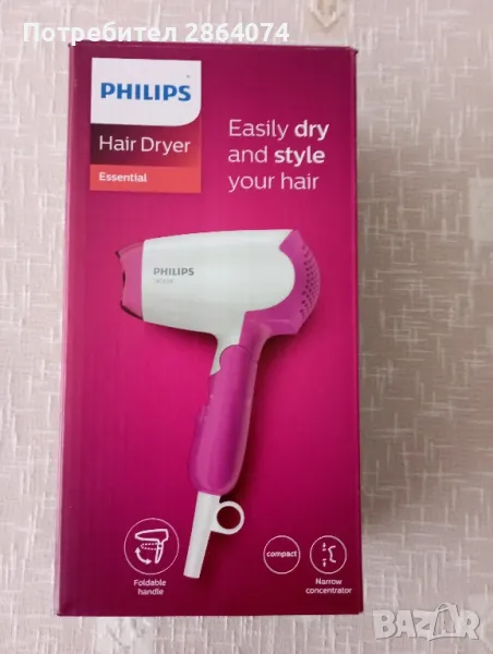 Чисто нов сешоар в гаранция с чупеща дръжка на марка Filips.