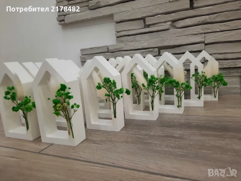 Подаръчетата са изработени от керамична смес а цветя от суха гипсофила.