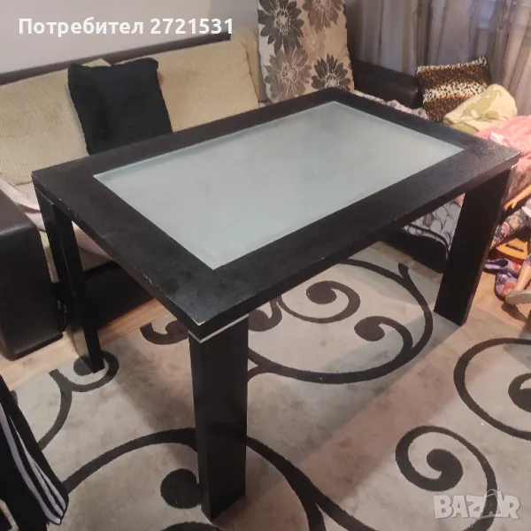 Продавам масивна трапезна маса със стъклена част, цвят Венге.
