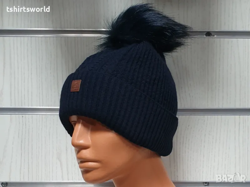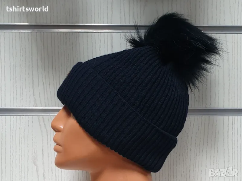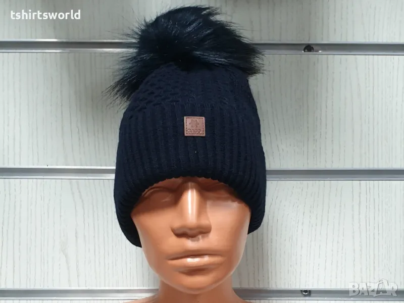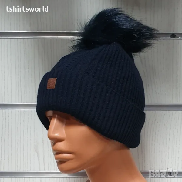 Нова зимна дамска шапка SilverStar в тъмносин цвят с пух/помпон → Обява 47927749