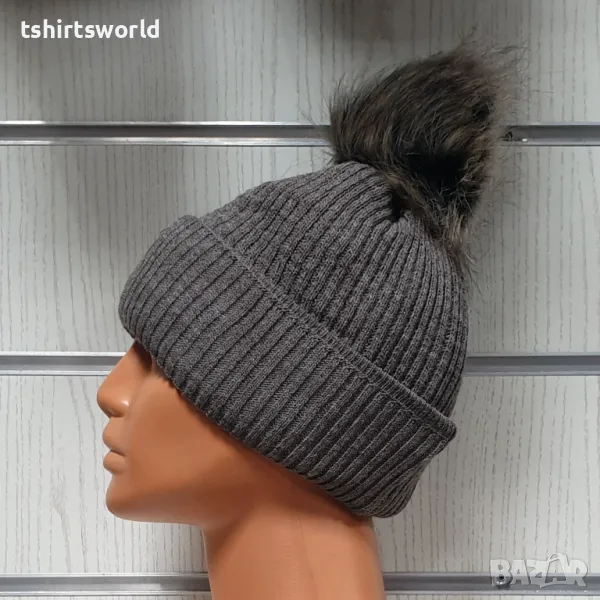 Нова зимна дамска шапка SilverStar в кафяв цвят с пух/помпон → Обява 47927787
