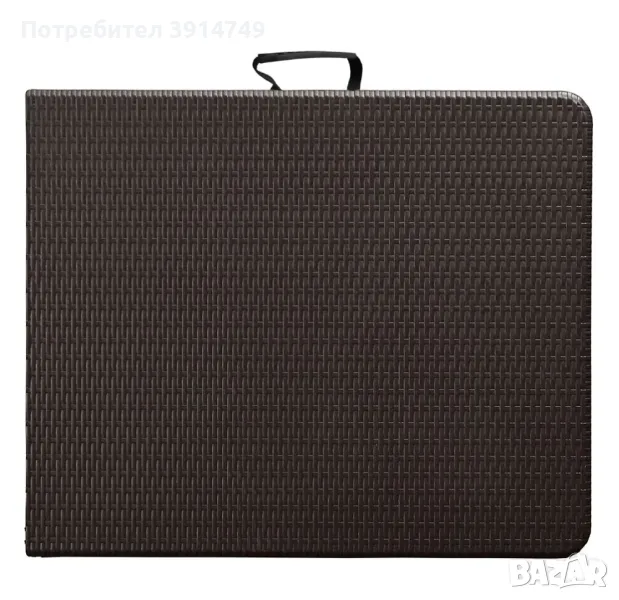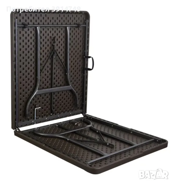 Изключително солидна и стабилна сгъваема маса. Идеална както за тераса, двор и къмпинг, така и за кетъринг и банкети. Лесно преносима. Качествена подсилена повърхност, устойчива на ултравиолетовите лъчи. Стоманена носеща конструкция. Широчина 75 см, височина 72 см, дължина 180 см. Тегло 12 кг. Кафява.