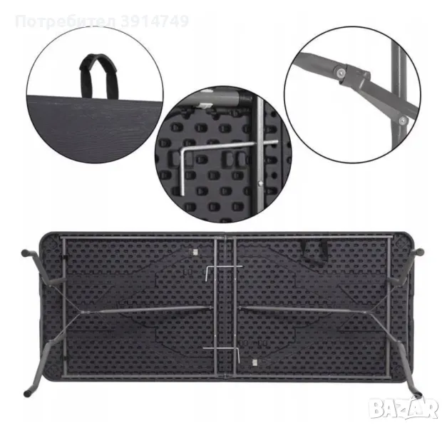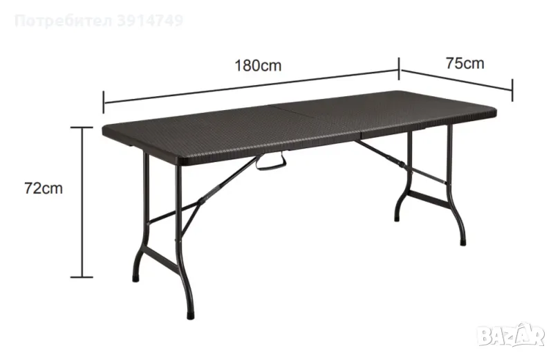 Сгъваема преносима солидна маса - двор, тераса, къмпинг, 75х180х72 см, UV устойчива повърхност, НОВА → Обява 47927959