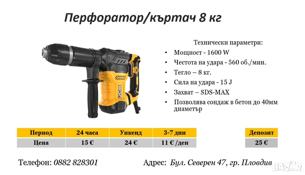 Перфоратор/къртач 8 кг под наем → Обява 47928172