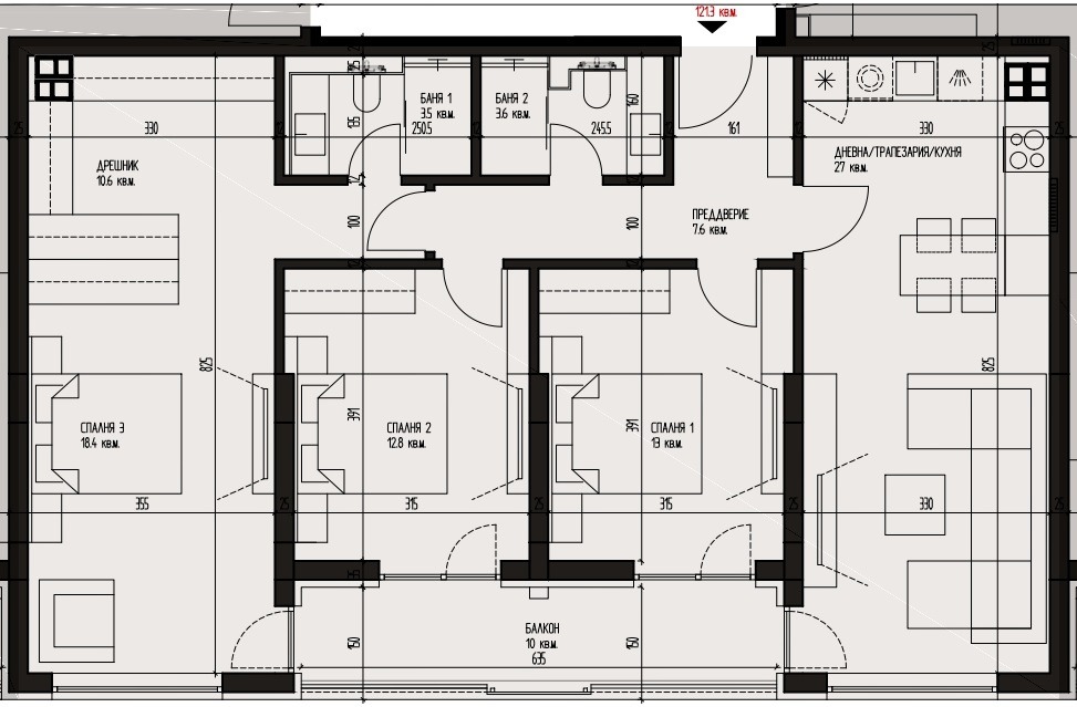 Просторен функционален 4-стаен апартамент в луксозна жилищна сграда с модерна визия в кв. Кръстова вада на тиха улица, в близост до бул.Черни връх с застроена площ 121,28 кв.м.Разпределение: дневна с кухня и трапезария, три спални, две бани с тоалетна, преддверие, балкон. Изложение: Юг.Отоплението и охлаждането са осигурени от термопомпена инсталация включена в цената. На мазилка и замазка, с блиндирана входна врата СОЛИД, алуминиева дограма ЕТЕМ. Асансьорна уредба КОНЕ. Контрол на достъпа. Видеонаблюдение по целия периметър.