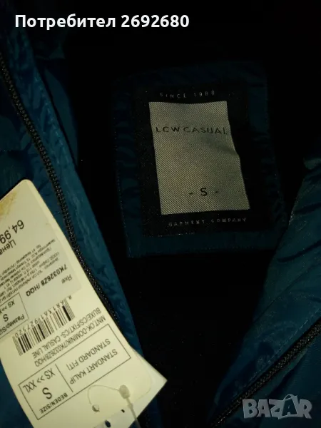 И двете якета са на LWC CASUAL, и двете са зимни и добре подплатени навсякъде, включително и качулките им, особено синьото има много дебела подплата.