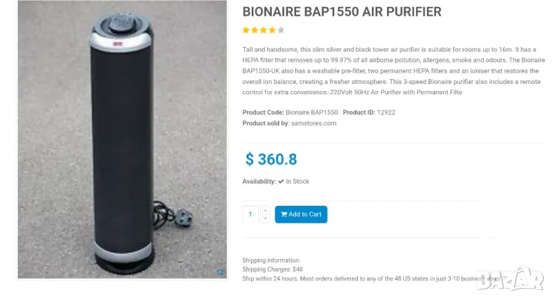 Bionaire BAP 1550 климатичен пречиствател на въздух