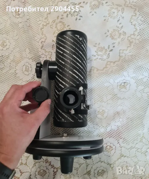 сте готови - няма необходимост от инструменти за настройка.Ползван е изключително малко и просто стои в шкафа защото нямам време за съжаление да се занимавам с него. Лошото е ,че заедно с кашона му са изхвърлени по погрешка и 2та окуляра които вървят с него 4 и 20 мм.както и голямата капачка (по принцип тя даже не е необходима защото тръбата винаги стои надолу и просто е излишна)