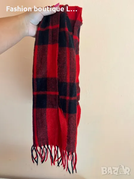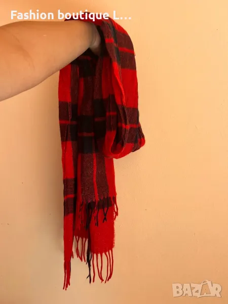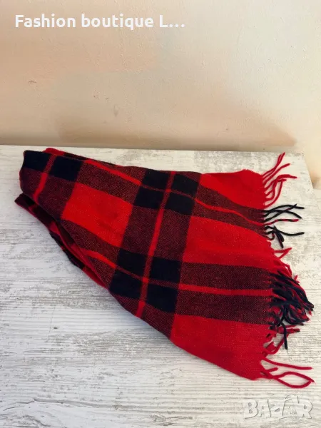 Червено и черно каре зимен дълъг дамски шал с ресни накрая ❤️🖤 → Обява 47930189