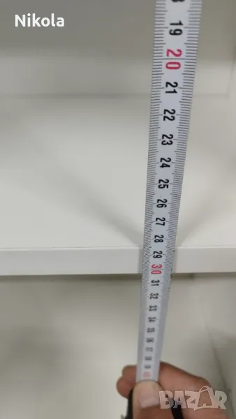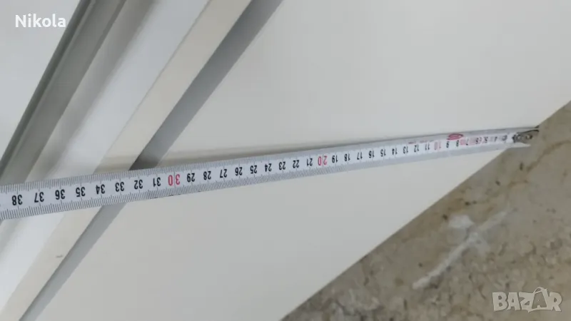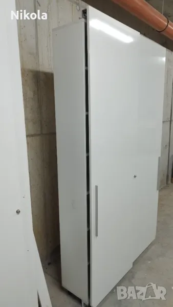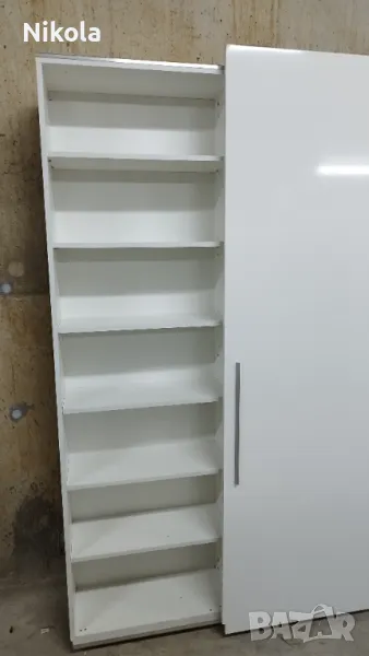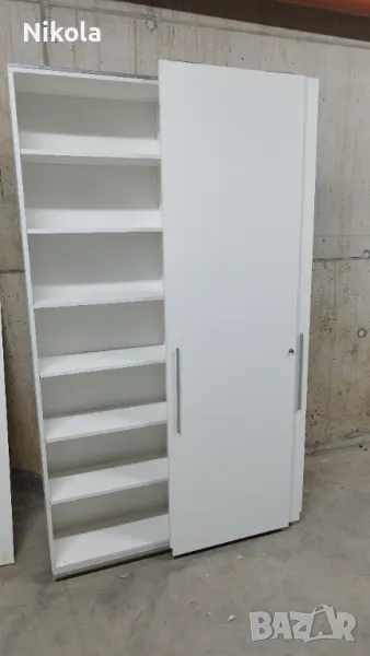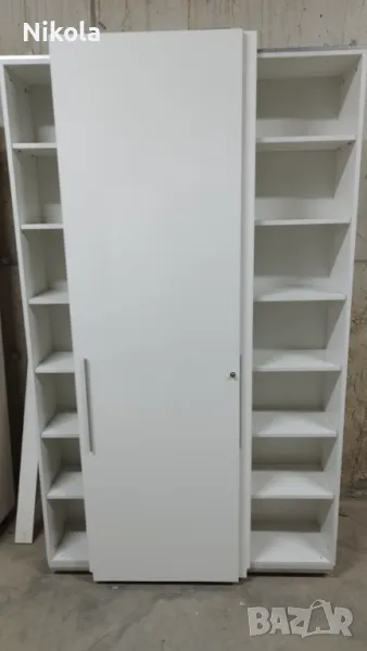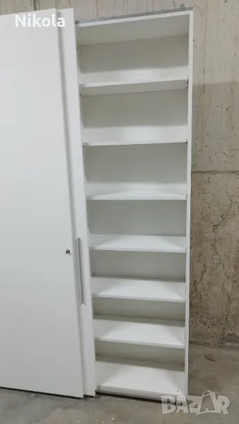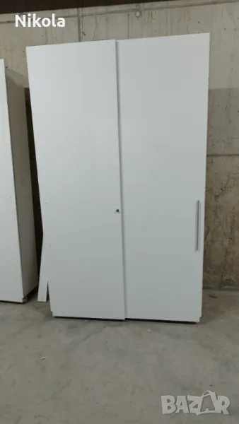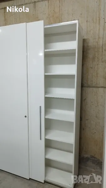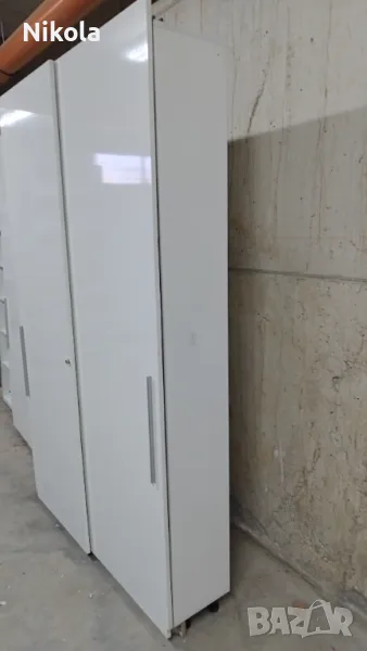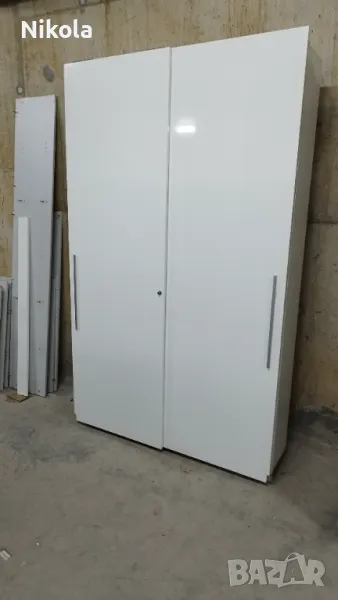 Гардероб 1 е в добро състояние, има 7 рафта в двете крила Размерите са Ширина 135,5см ,Височина 232см и Дълбочина 30см без вратите. Гардероба е изработен от ПДЧ както корпуса така и гърба цвета е бял , братите са бял гланц . Разтоянието между рафтовете е 28,5см.