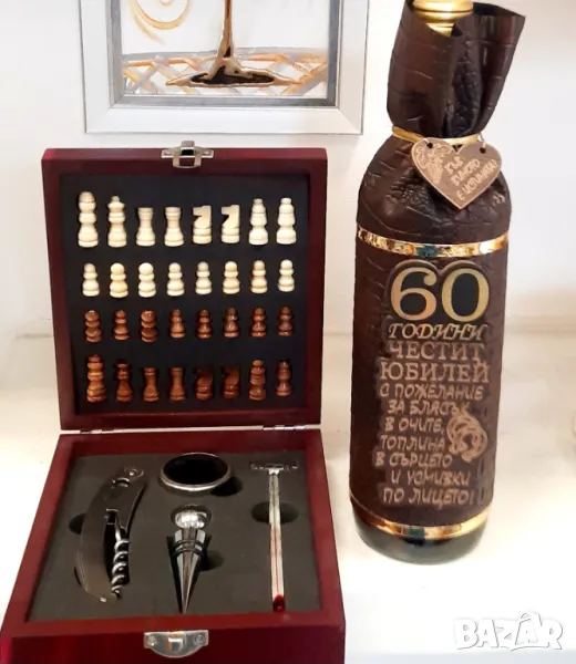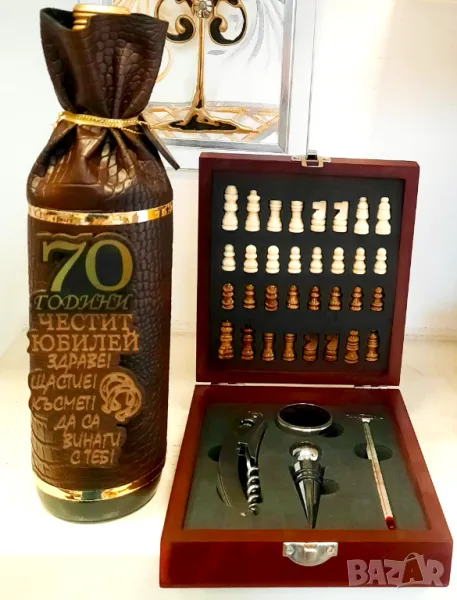 Оригинален подарък за всички юбиляри - ценители на шаха и виното.