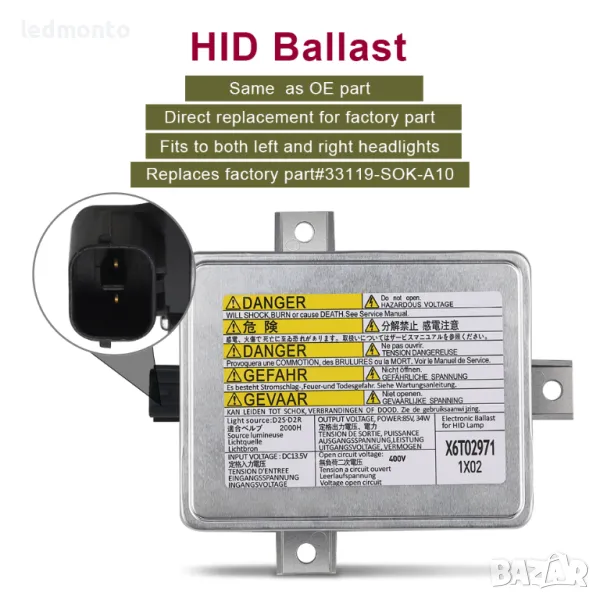 Този модул за контрол на осветлението Xenon HID (баласт) е съвместим с множество модели на **Acura**, **Honda**, **Mazda**, **Mitsubishi** и **Suzuki**. Той предлага надеждност и дълготрайност за вашите ксенонови фарове, осигурявайки по-ярко и стабилно осветление.