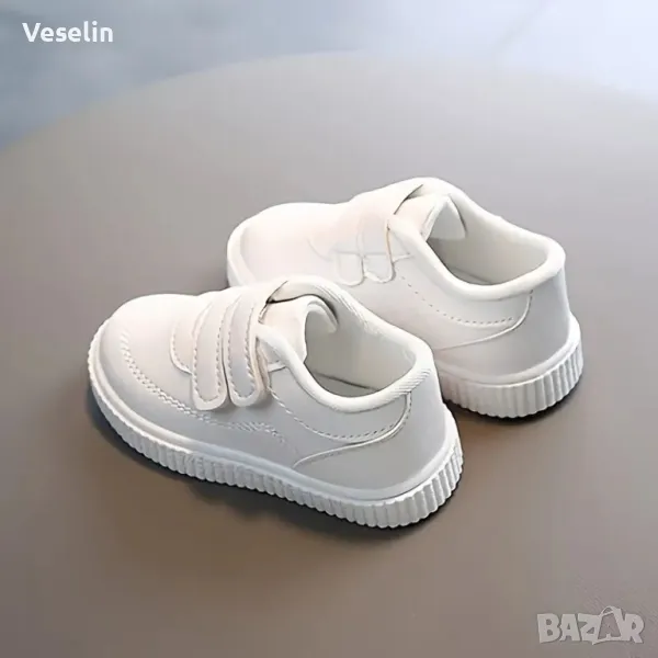 Детски бели, спортни обувки. Велкро закопчаване, удобни, нехлъзгащи, ежедневни.