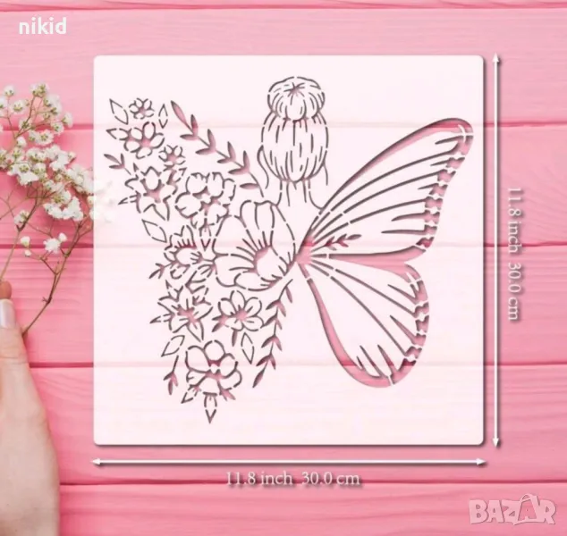 Момиче пеперуда цветя в гръб голям стенсил шаблон спрей за торта украса стена декорация Scrapbooking, снимка 1 - Други - 47932825 Момиче пеперуда цветя в гръб голям стенсил шаблон спрей за торта украса стена декорация Scrapbooking, снимка 2 - Други - 47932825 1/2