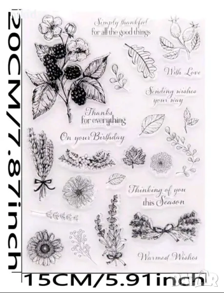 Малини къпини шипки слънчоглед цветя овес листа силиконов гумен печат декор бисквитки фондан Scrapbo → Обява 47933256