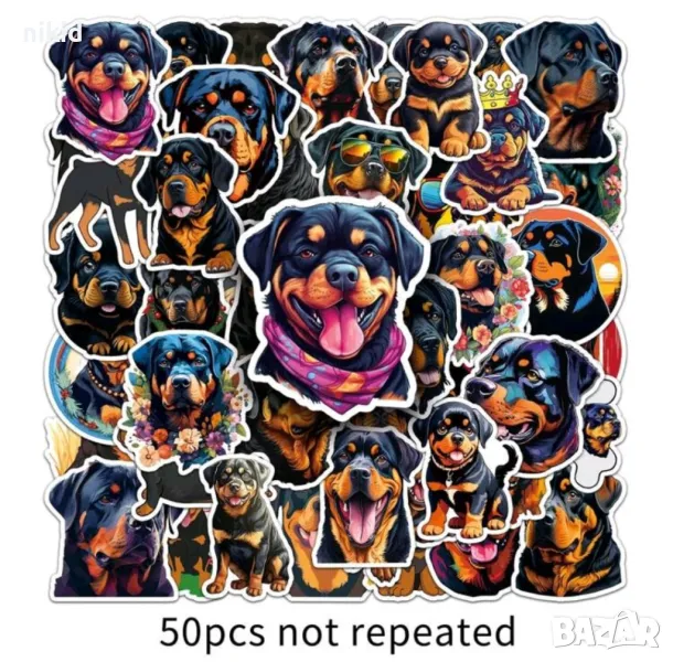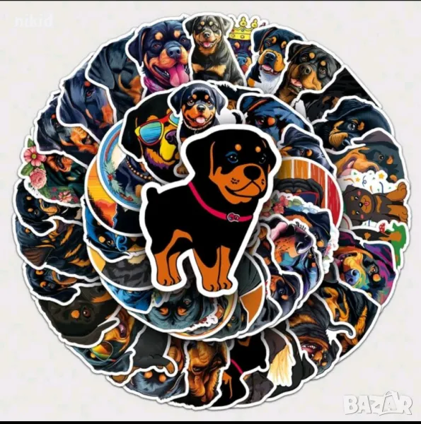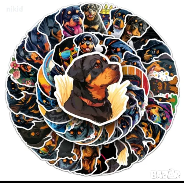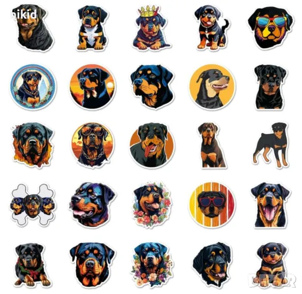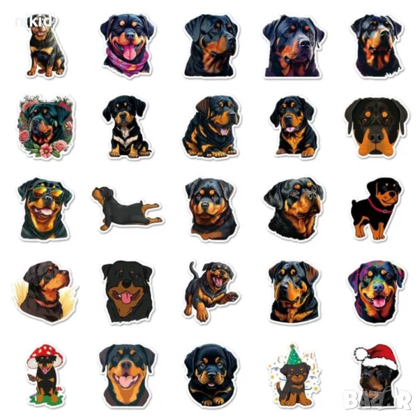 50 бр Куче кучета Ротвайлер самозалепващи лепенки стикери за украса декор картонена торта → Обява 47933265