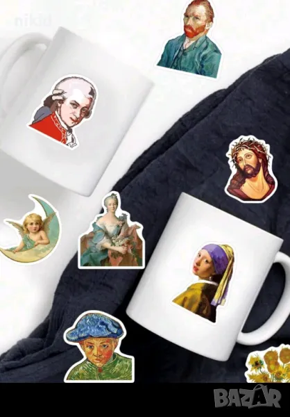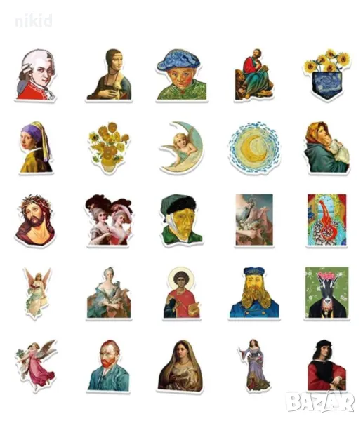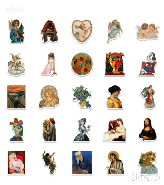 50 бр Арт Художествени Известни самозалепващи лепенки стикери за украса декор картонена торта → Обява 47934079