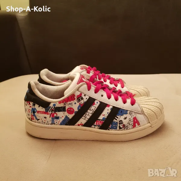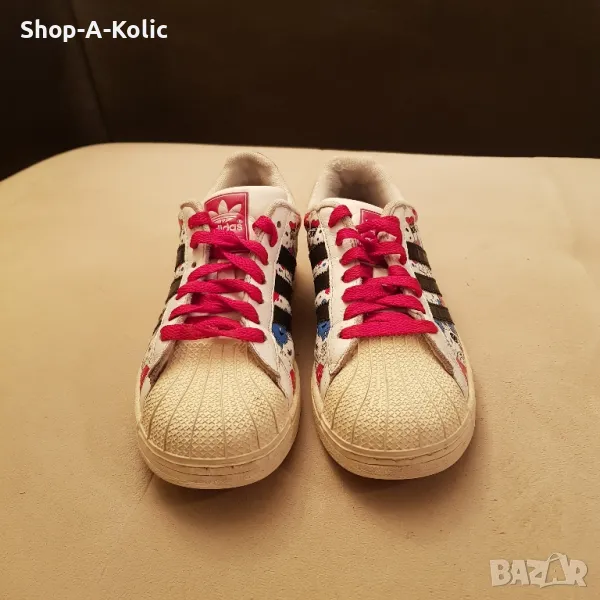 Оригиналната класика от Adidas-SUPERSTAR. Много редки, красиви и ефектни-естествена кожа, свежарски принт. Отлично състояние, видно от детайлните снимки. Made in Vietnam. Размер: 36 Моля, последвайте ни и в Instagram: Shop-A-Kolic