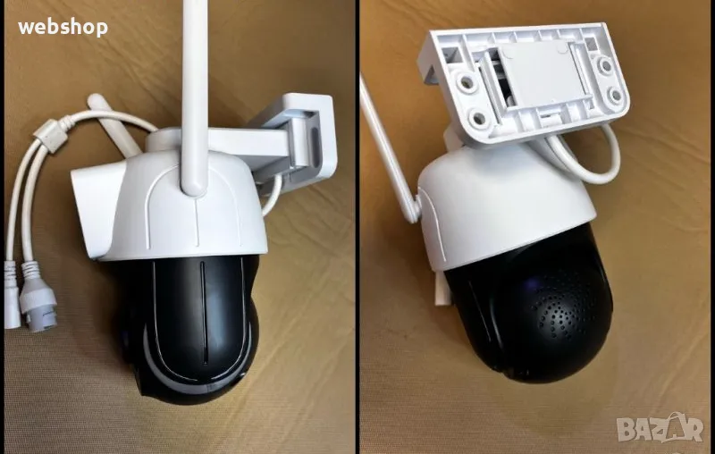 Наблюдение и управление на камерата през интеренет където и да се намирате по света с приложението icsee за смартфон android или ios айфон или компютър през браузера. Едната камера се позиционира и наблюдава точно определена област. А втората камера е управляема и можете да я позиционирате във всяка посока!