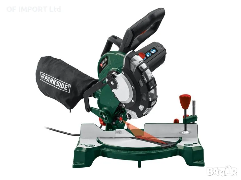 Настолния циркуляр Parkside за рязане на дърво и пластмаса е с лазер за прецизно позициониране и рязане с плавно накланяща се глава.