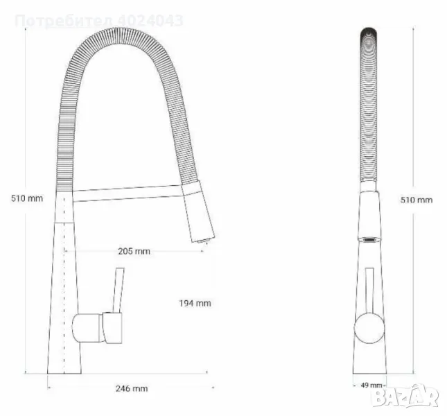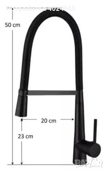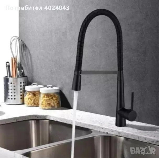 Висок кран за мивка с подвижен гъвкав чучур тип "U", черен