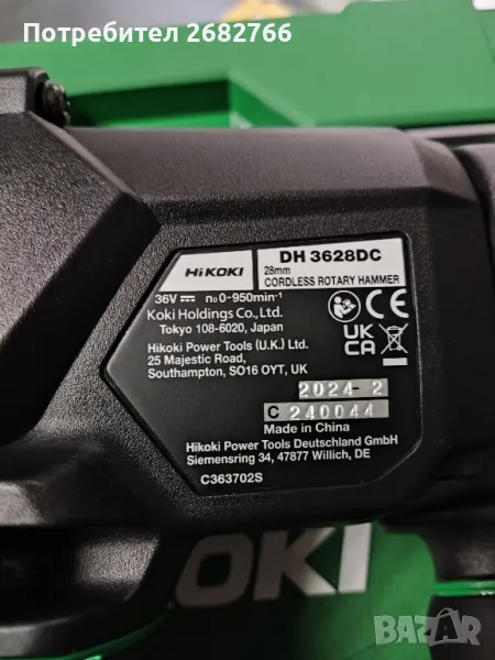 Акумулаторен безчетков перфоратор hikoki dh3628dc → Обява 47937117