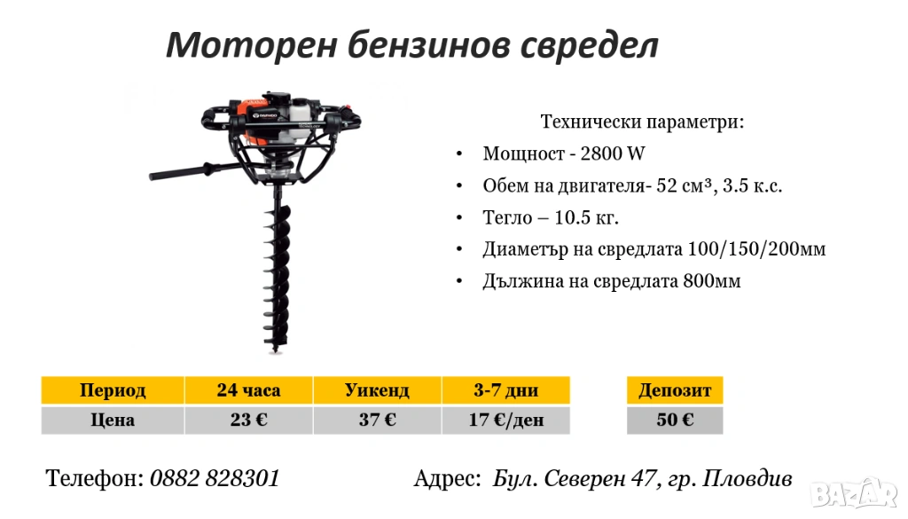 Моторен бензинов свредел под наем → Обява 47937853