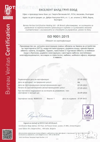”ЕКСЕЛЕНТ БИЛД ГРУП” е сертифициран Бърлгарски
