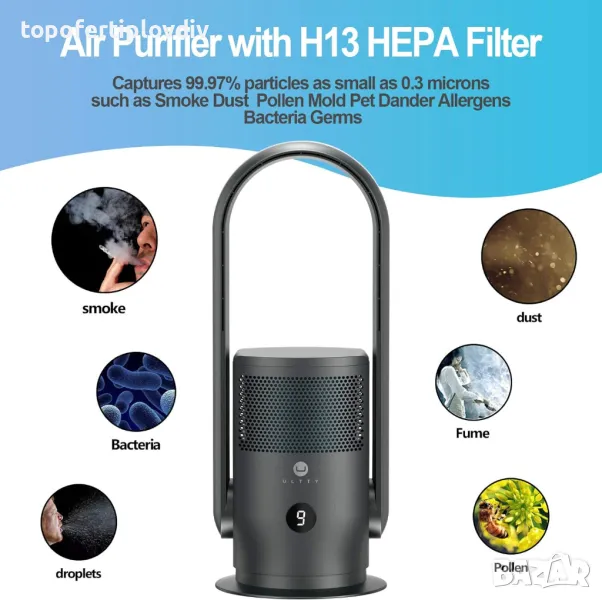 Пречиствател за въздух и вентилатор ULTTY Rotorlos Fan with Air Purifier,Гаранция