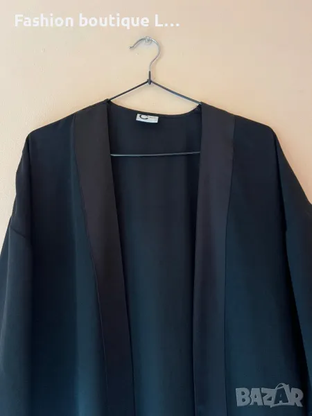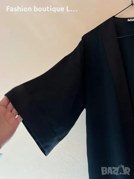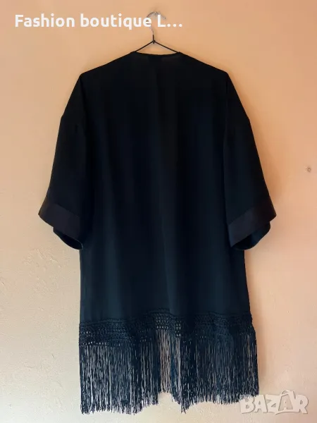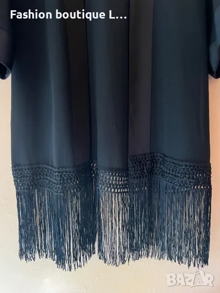 Черно сатенена дамско кимоно с ресни овърсайз модел 🖤 → Обява 47938965