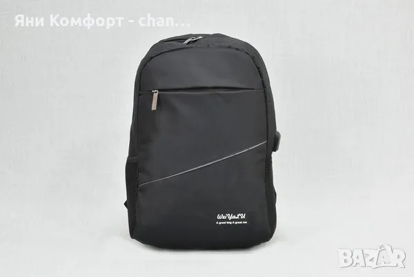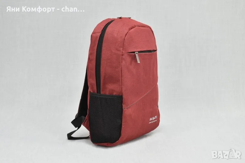 Раница за лаптоп модел 31590. Изберете от три цвята: бордо, син, черен. Материал: текстил- подходяща за лаптоп 14.1" - USB кабел и USB порт за зареждане- лицев джоб с цип- два странични джоба- горна дръжка за носене в ръка- ергономичен гръб - регулируеми презрамки - не е включена мобилна батерияРазмер продукт: см 45 х 27 х 12