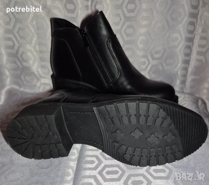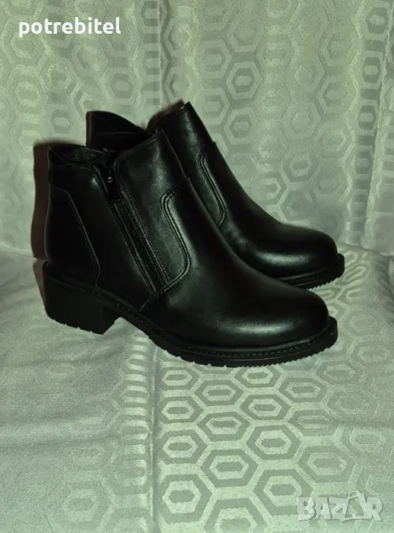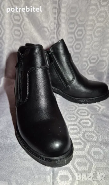 Естествена кожа, хастар-топъл,нови,височина ток отзад4см.,отпред-1см., стелка -23см., 2 функционални ципа за лесно обуване.