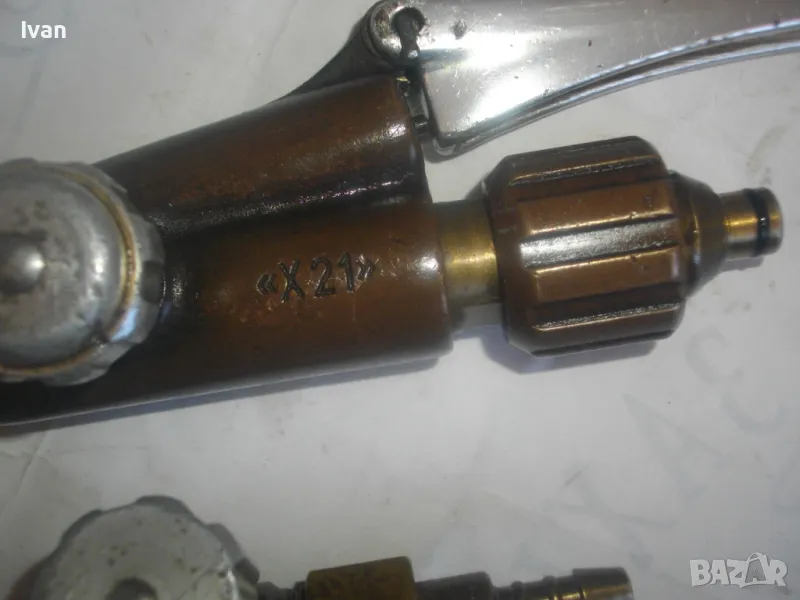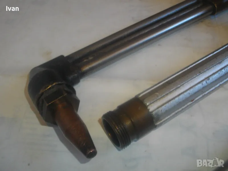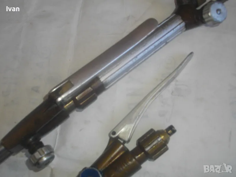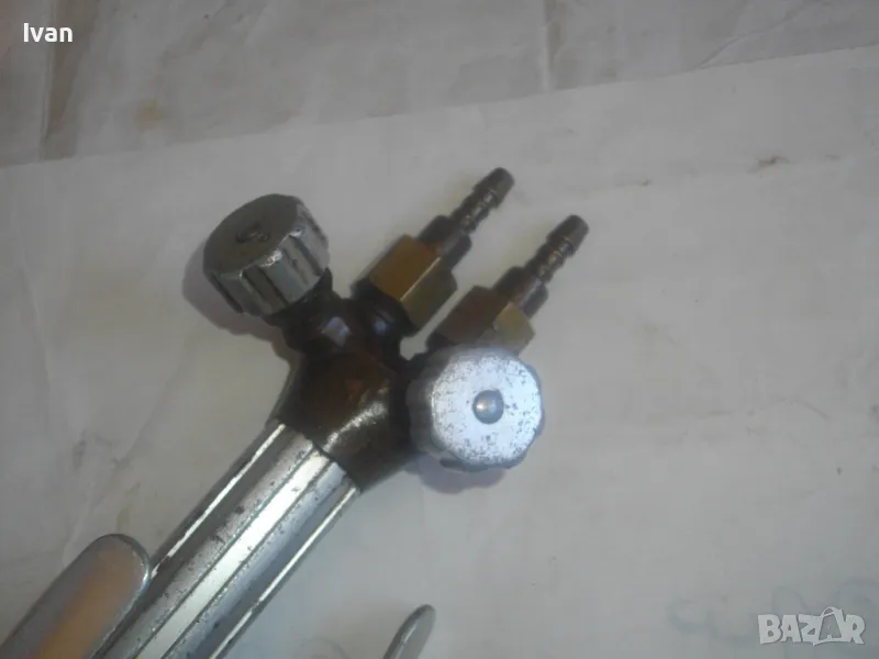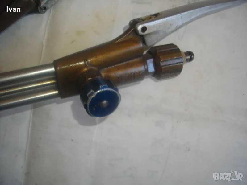 Приставка резак резач оксиженен за газо-кислородно-ацетиленово рязане, спояване, заваряване - за дръжка бренер X 21. Професионална. Дължина 315 мм. Тритръба, алуминиев спусък, 1 алумин спирателен кран. Поставена оригинална голяма контактна дюза. Почти нова приставка, много малко ползвана, в отлично състояние. Цена - 199 лв.