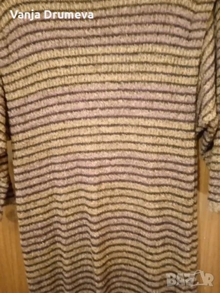 точните размери са дължина 120 см, ширина долу 65 см ширина в кръста 55 см, ширина в раменете 65 см, дължина на ръкава 50 см, еластична е много ефектна с кожен колан няма забележки