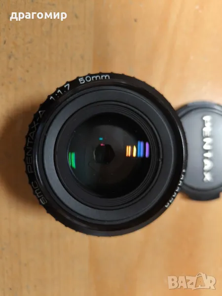 продавам обектив неразличим от нов SMC PENTAX-A 1:1,7 50mm ,с предна и задна капачка, кожен калъф, имам още много други фотоапарати, камери, обективи, чанти, светкавици, батерии, зарядни устройства, касети, филтри, ремъци, ленти, при закупуване на повече неща отстъпка