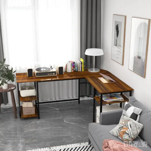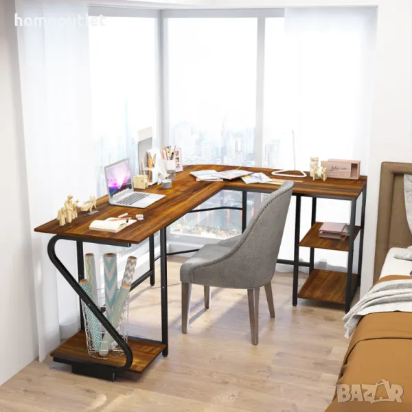Бюрото е снабдено с рафтове за съхранение от лявата и дясната страна.