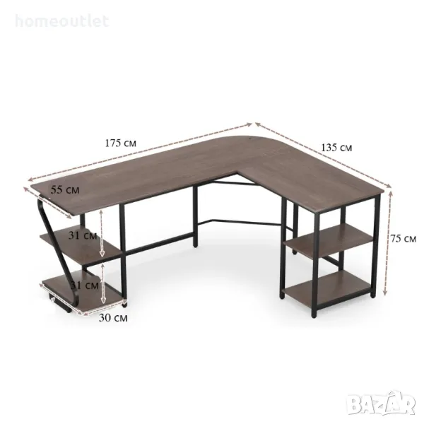 Изработено от първокласен плот от дървесни частици P2 (ПДЧ) и удебелена здрава стоманена рамка, нашето бюро с L-образна форма е много стабилно.