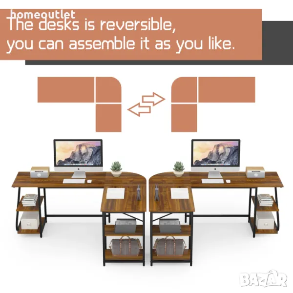 Компютърното бюро може лесно да се сглоби по различни начини, според нуждите на съответното пространство.