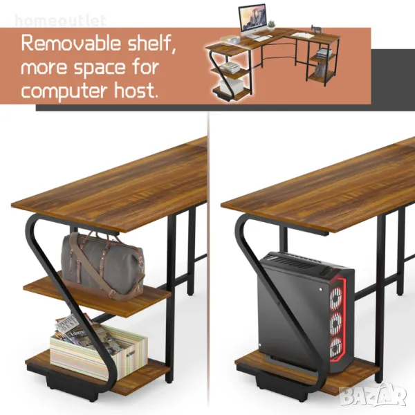 Височината на рафта се регулира, можете да премахнете средния панел, за да поставите по-високи неща, като например процесора.