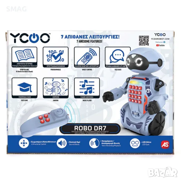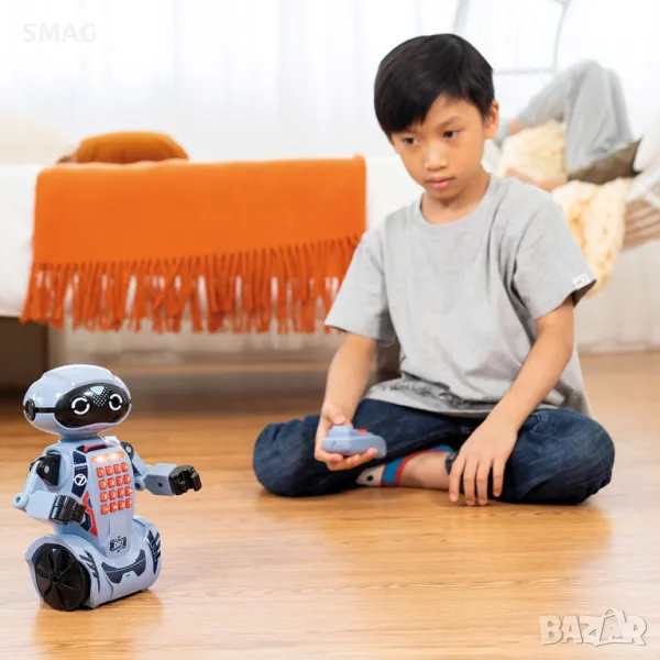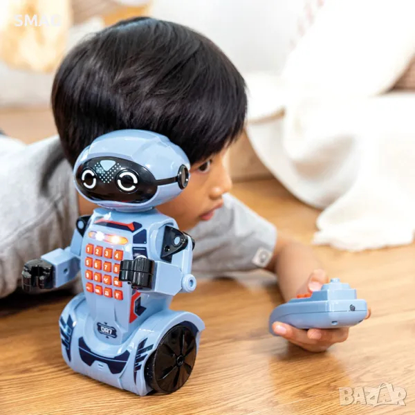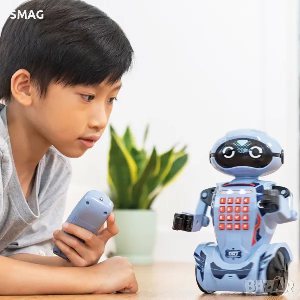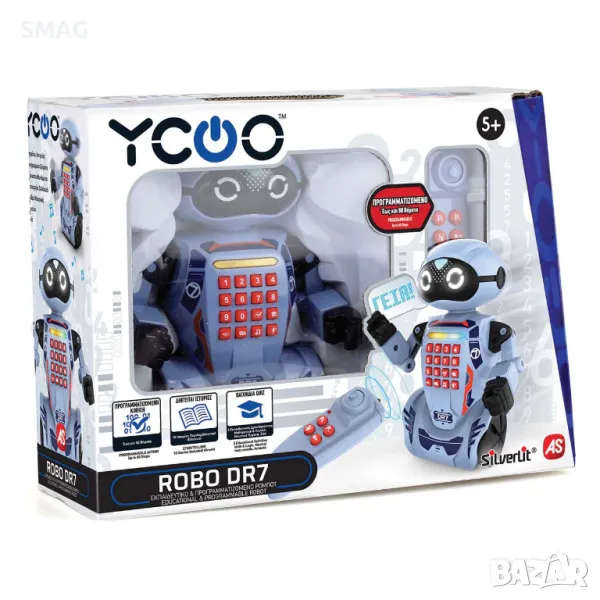 Робо DR7 Робот с дистанционно управление със 7 функции. Разказва истории, движенията му са програмирани, има пълен функционален контрол, говори, решава тестове, танцува и пуска музика. Всеки пакет включва дистанционно управляван робот Robo DR7 и интелигентен контролер. Каквото и да търсите в робот, ние сме сигурни, че ще го намерите в света на Silverlit Robots. Широка гама от роботизирани играчки с една обща цел: технология за всички възрасти и интереси. Забавление, иновация и взаимодействие в една марка. Работи с 4 AA батерии за робота (не са включени) и 2 AAA батерии за контролера (не са включени).