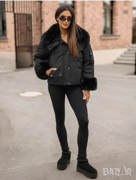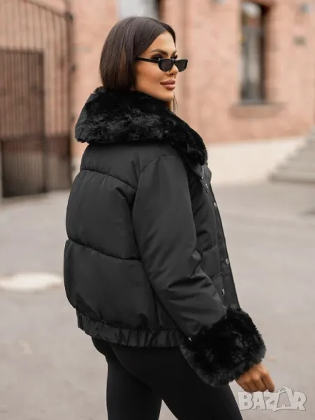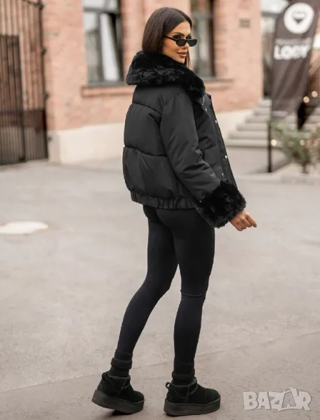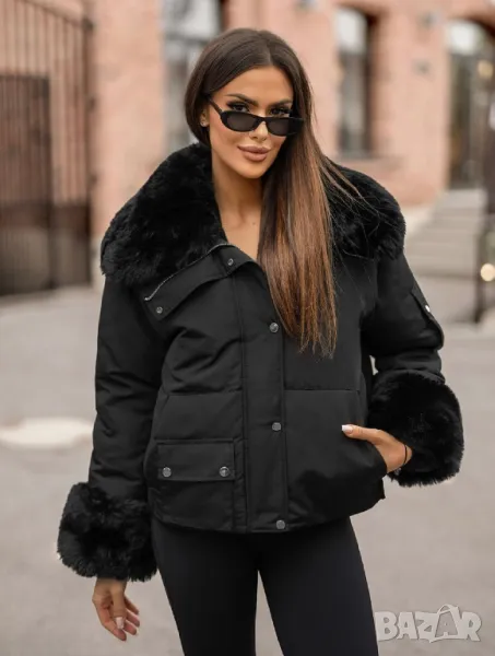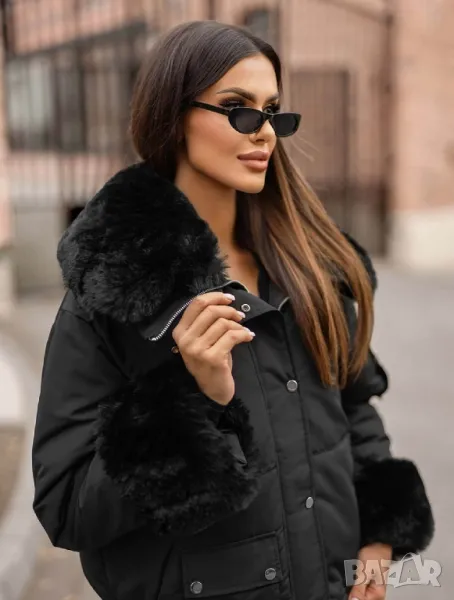 • Богата пухена яка и маншети на копчета. Могат да се свалят