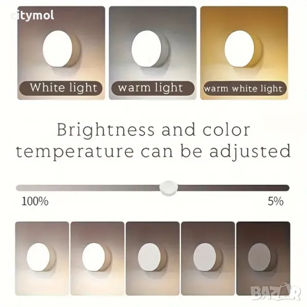- LED нощна лампа с регулиране на мощността на осветяване и избор на топла, студена или смесена светлина.