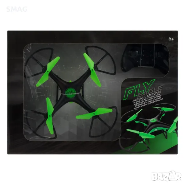 Дрон с автоматично въртене, работа без глава, 2.4GHz технология, полети на 360º ротация, 6-осен жироскоп и управление на светлината. Захранва се от 1 3.7V 300MHA батерия за дрона (включена) и 3 AA батерии за контролера (не са включени).