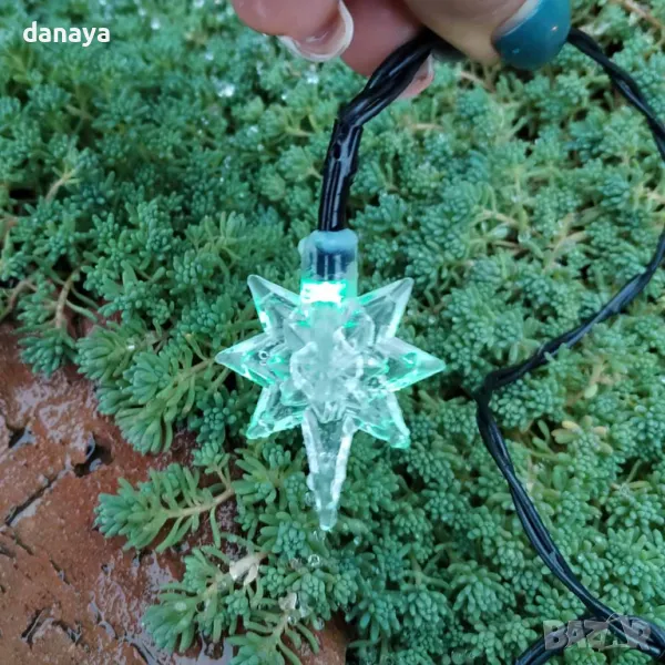 LED декорация с многоцветни звезди, верига от 20 светодиода със соларно зареждане, 4 метра.