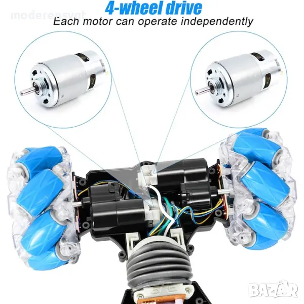 Тази иновативна кола с дистанционно управление може да се движи напред, назад, настрани, както и да се върти на 360 градуса. Модела е многофункционален, колата може да бъде бъги и да преминава през различни неравности, може да бъде и спортна, да развива големи скорости. При преобръщане по "гръб" тя продължава да се движи под вашите команди благодарение на иновативния дизайн. Колата също така може и да изкарва пушек ако поставите малко вода в контейнера в задната част.