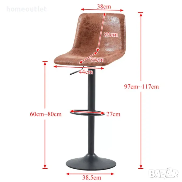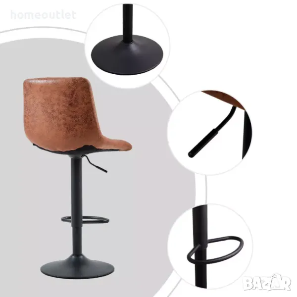 Металната основа на този бар стол е стабилна и здрава, снабден е и с механизъм за регулация на височината.