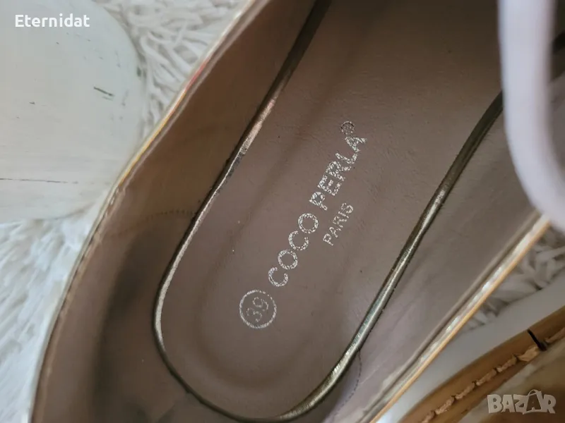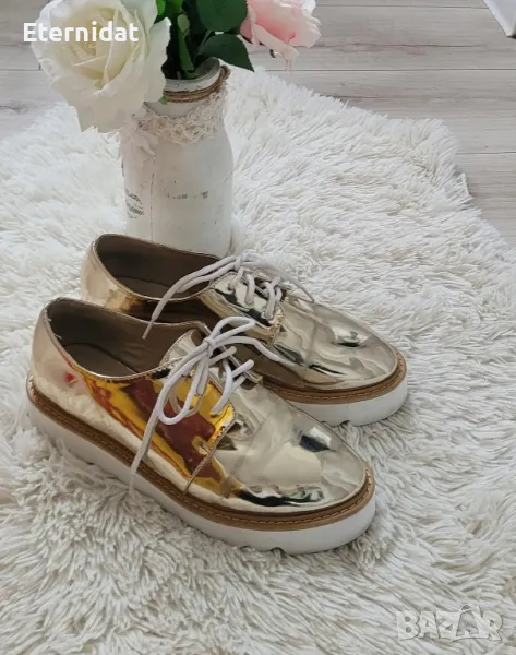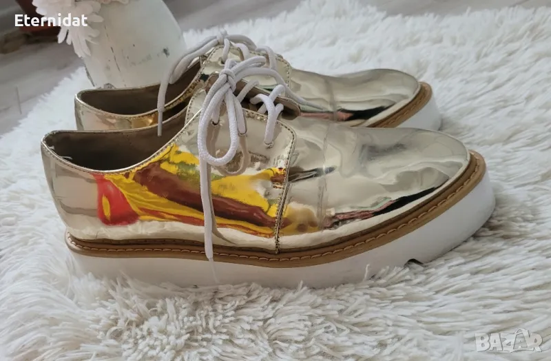 Златисти огледални обувки COCO PERLA Paris. Супер стилни и ефектни. Номер 39. Стелка 25см ( отговарят си изцяло на номера).Цена 45лв