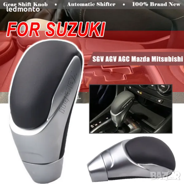 Топка скоростен лост за Suzuki Grand Vitara, SX4, Swift, Suzuki кожен дизайн + хром Mitsubishi